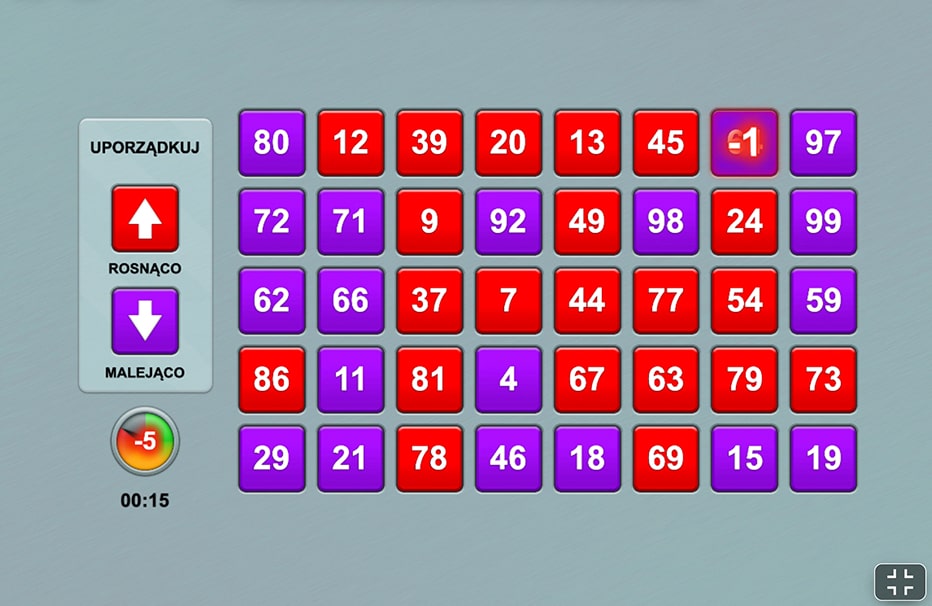 Zmierzenie się z grą umysłową może być bardzo stymulującym wyzwaniem. Ta aktywność ma na celu ćwiczenie pamięci roboczej, analizy wzrokowej i prędkości przetwarzania. Głównym celem jest mentalne uporządkowanie liczb, aby wyeliminować je w kolejności od najmniejszej do największej lub odwrotnie.